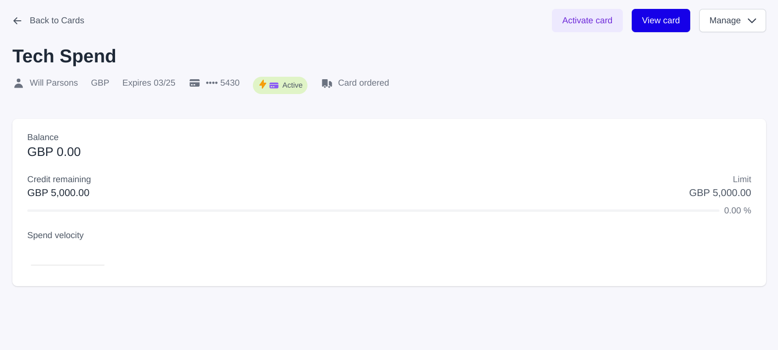 Simply log in to the platform -> click on Cards and then click on your card -> at the top you'll see a button saying 'Activate card' (light purple button at the top) -> we will send you a code to input into the prompt on your screen.